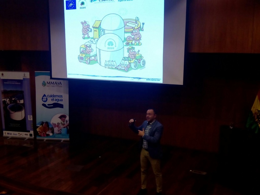 Manuel Abellán, técnico de ESAMUR, ha participado recientemente en Bolivia en un curso especializado sobre Selección de Tecnologías y Diseño de Plantas de Tratamiento de Aguas Residuales. Una cita que ha permitido a Abellán dar a conocer algunos de los avances del proyecto LIFE STO3RE, que persigue impulsar un modelo de economía circular aplicado a la gestión conjunta de los purines de granja y los lodos que se producen en estaciones depuradoras de aguas residuales (EDAR) de pequeño y mediano tamaño.