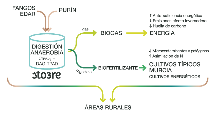 LIFE STO3RE está pensado para áreas rurales en las que un sistema centralizado de la gestión del fango de pequeñas estaciones depuradoras y de los residuos ricos en nitrógeno como es el purín, reducirá los costes de inversión y explotación.