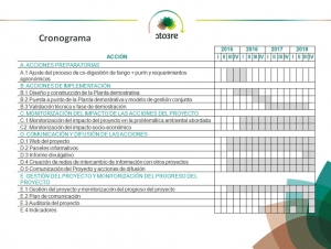 La tecnología que se va a aplicar consiste en la combinación de digestión anaerobia en doble fase de temperatura (digestor termófilo seguido de digestor mesófilo), junto con oxidación mediante adición de ozono y cavitación hidrodinámica. EL objetivo de este proceso es separar las principales fases de la digestión anaerobia, para maximizar la producción de biogás. La ozonización y la cavitación hidrodinámica se aplicarán como pres y post-tratamiento del co-sustrato para hidrolizar los fangos y purines a introducir en el proceso a co-digestión anaerobia.