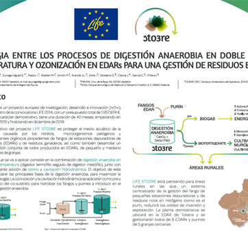 El principal objetivo del Proyecto LIFE STO3RE es proteger el medio acuático de la contaminación causada por los nitratos, microorganismos patógenos y microcontaminantes orgánicos procedentes de fangos de estaciones depuradoras de aguas residuales (EDARs) y de residuos ganaderos, así como también desarrollar un modelo de gestión conjunta de lodos producidos en EDARs, de pequeño y mediano tamaños, y purines de granjas.