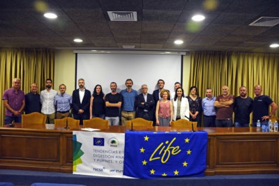 On June 18, LIFE STO3RE project held at the facilities of CEBAS-CSIC, in the Espinardo University Campus, the technical day" TENDENCIAS E INNOVACIÓN EN DIGESTIÓN ANAEROBIA DE FANGOS Y PURINES, Y GESTIÓN DE LODOS" (TRENDS AND INNOVATION IN ANAEROBIA DIGESTION OF SLUDGE AND MANURE, AND MUD MANAGEMENT), a meeting point for professionals in the water purification